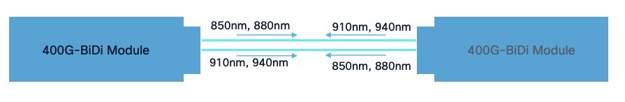 The technology behind it uses eight PAM4 lanes mapped to four optical wavelengths per fiber; the transceiver enables high-speed, cost-effective short-reach connectivity with duplex LC connectors. Each fiber carries four wavelengths simultaneously — two in each direction — at 850nm, 880nm, 910nm, and 940nm. This is short-wavelength division multiplexing (SWDM) applied to the multimode domain.